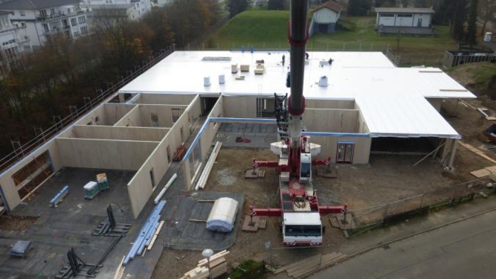 6-gruppiger Kindergarten in Eggenstein-Leopoldshafen *Montage Wände und Dach*