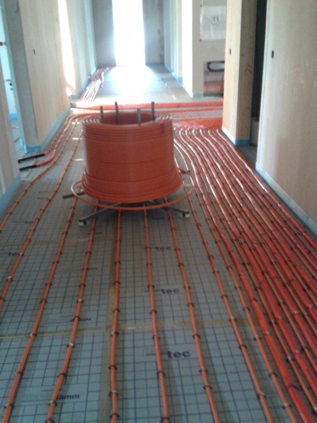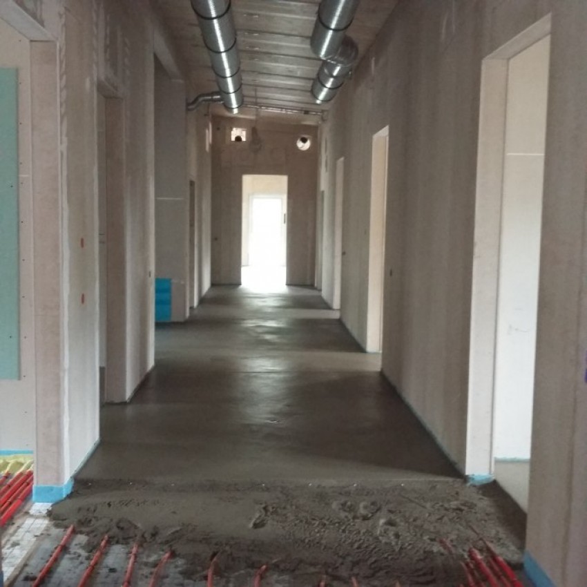 Aktuell läuft der Innenausbau auf Hochtouren. Nachdem die Fußbodenheizung nun verlegt ist, wurde der Estrich eingebracht. Ab 21.06.2018 wird dann die Lüftungsanlage eingebaut.
