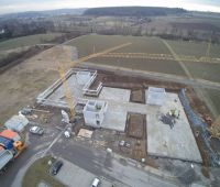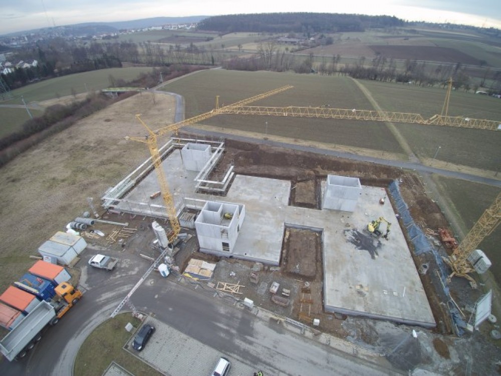 Hier entsteht ein 2-geschossiges Gebäude mit einer Bruttogeschossfläche (BGF) von ca. 3.000 m² und insgesamt 48 Zimmern. Das Pflegeheim besteht aus drei Bauteilen. Der Grundriss des Gebäudes ist bereits gut zu erkennen.