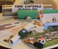 Gemeinsam vergruben Kinder aus der Vorschulgruppe und Schüler der Grundstufe die Zeitkapsel, in der sich Geschenke für Kinder in kommenden Generationen befinden, um an diesen Tag zu erinnern.