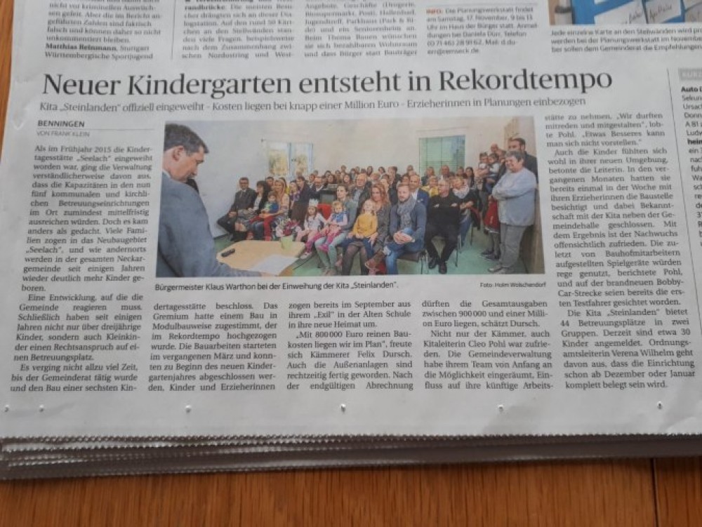 Nach einer Bauzeit von 6 Monaten hat Herr Bürgermeister Klaus Warthon am 26. Oktober 2018 zur Einweihung des neuen Kindergartens eingeladen.