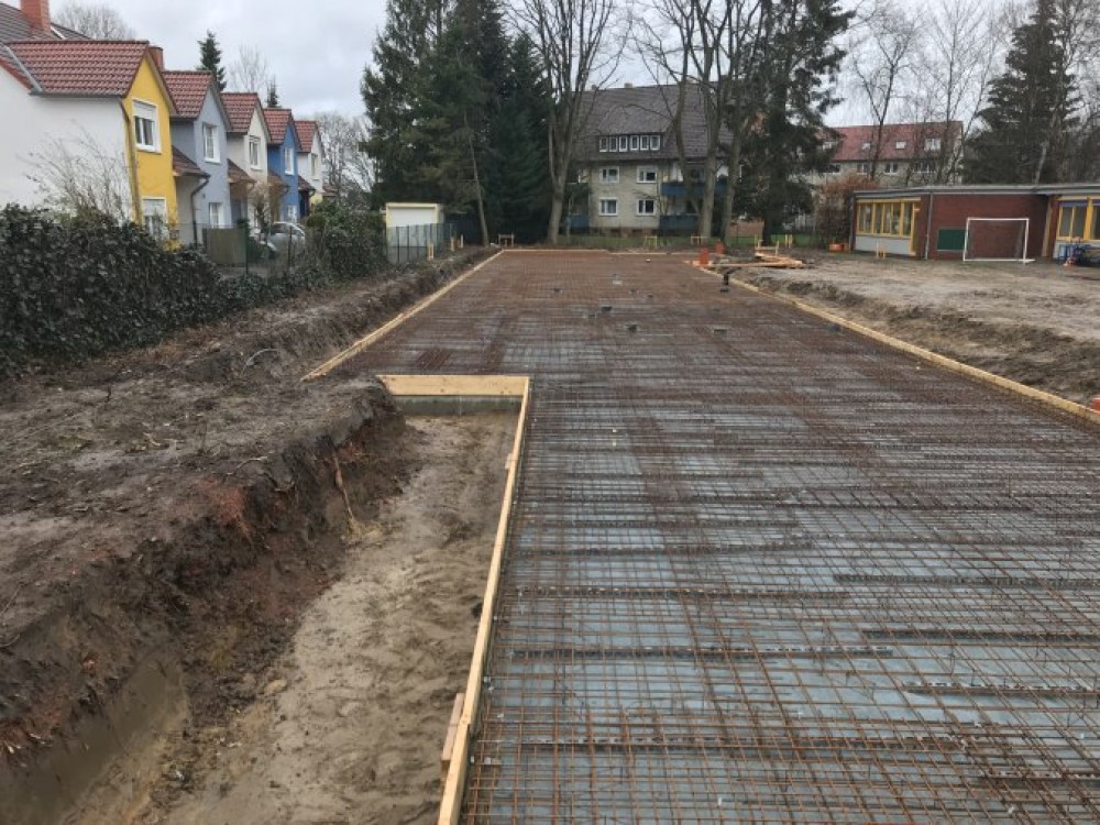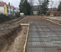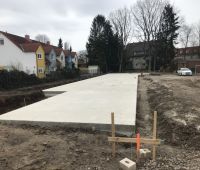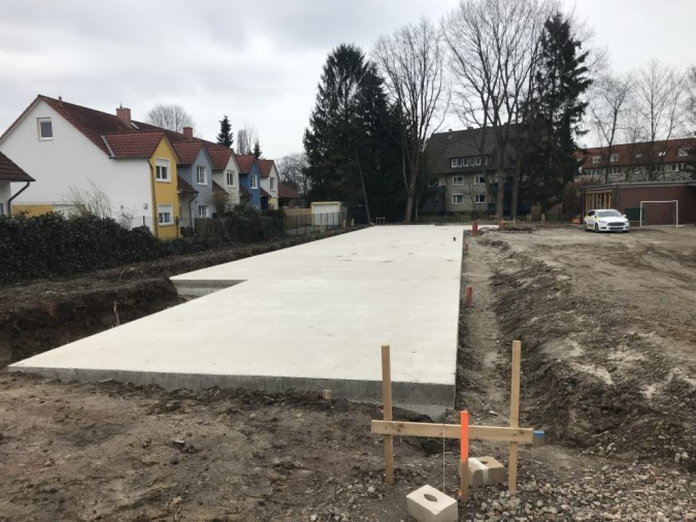 18. Februar 2019 begonnen. Inzwischen ist die Bodenplatte fertiggestellt und die Wände können nun gestellt werden.