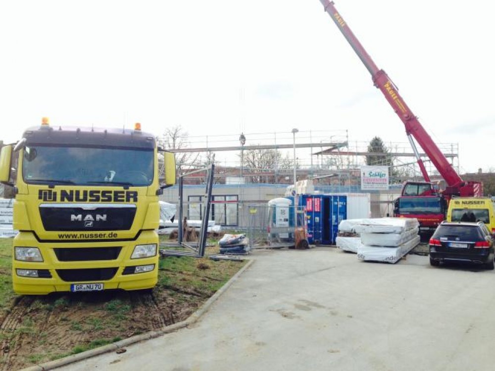 Es ist immer wieder spannend und interessant, eine Montage zu beobachten. In wenigen Stunden entsteht ein Gebäude. Ganze Wände incl. Fenster werden in Windeseile zu einem Gebäude verbunden.