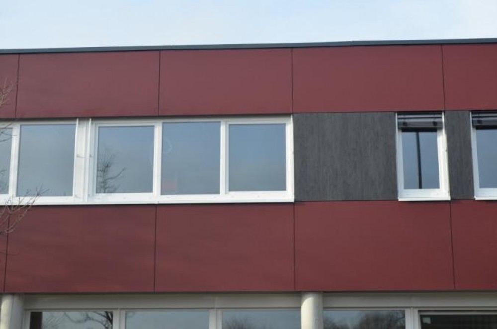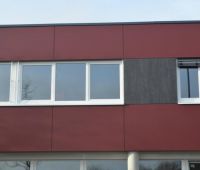 Nachdem im November 2014 Richtfest gefeiert wurde ist Ende Januar 2015 die Trespa-Fassade angebracht.