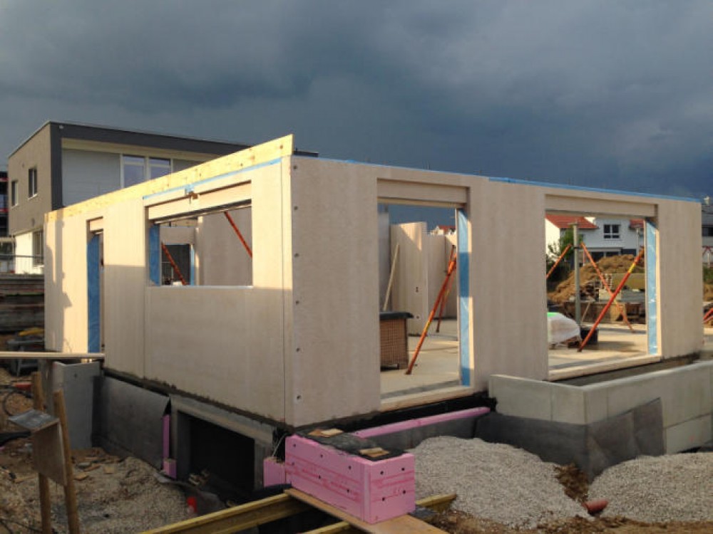 An nur 1 Tag standen die Erdgeschoß-Wände des Wohnhauses in Aichtal.